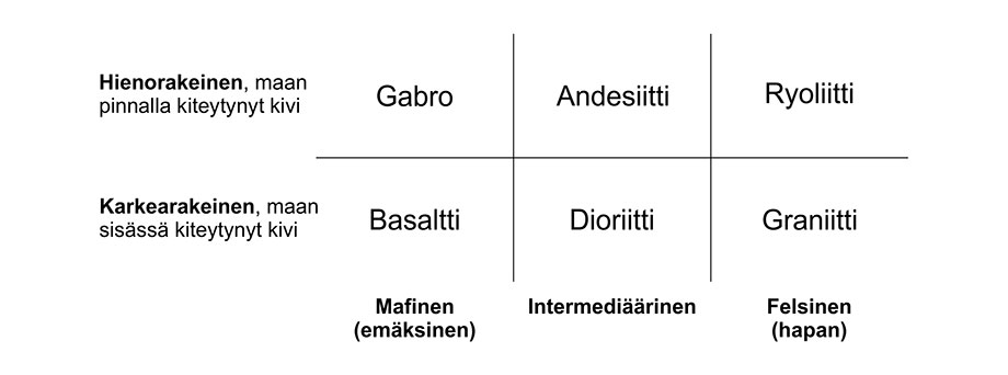 Päinvastainen tilanne magmakiven kiteytymisessä on aineksella, joka purkautuu tulivuoresta maanpinnalle. Kiteytyminen tapahtuu olosuhteista ja koostumuksesta riippuen tyypillisesti noin 700–1200 °C asteen lämpötilassa Tällöin jäähtyminen on todella nopeaa ja kiven tekstuurista tulee täysin tasainen. Silti intrusiivisen kiven mineraalikoostumus voi olla sama kuin maan sisässä kiteytyneellä kivellä. Syntyvä kivi luokitellaan ekstrusiiviseksi. Ekstrusiivisia magmakiviä ei juuri käytetä rakennuskivinä.