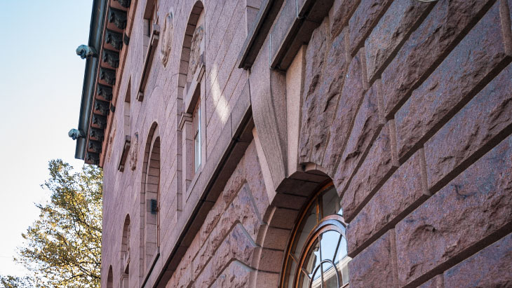Kivestä tehdyt julkisivut symboloivat turvallisuutta ja vakautta. Ehkä kiveä on siksi käytetty pankkien ja vakuutusyhtiöiden rakennusmateriaalina? Suomen pankki on malliesimerkki näistä periaatteista sillä rakennuksen koko julkisivu on massiivista punaista Hangon graniittia (ks. Postin talo). Rakennuksen on suunnitellut arkkitehti Gustaf Nyström ja se valmistui vuonna 1914. Suunnittelun esikuvana toimi myöhäisrenessanssia edustava firenzeläinen palatsi. Se ei ole kuitenkaan yhtä koristeellinen kuin viereisellä tontilla sijaitseva niin ikään uusrenessanssia edustava Säästöpankin talo.