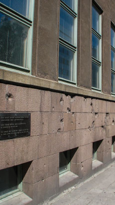 Postitalon punaisesta hangongraniitista valmistettu kivijalka muistuttaa talvisodan tuhoisimmasta pommituksesta. Yllätysmaanantaina 29. tammikuuta1940 postitalon edustan pommituksissa menehtyi 29 henkilöä. Turussa tuona päivänä menehtyi kaikkiaan 36 henkilöä, mikä on huomattava osuus koko talvisodan aikana Turussa menehtyneistä, joita oli yhteensä 52.